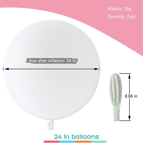 24 inç lateks balon küçük seti: Sevimli balon setini yapmak için balonların farklı renklerini kullanma. Çocukların oynaması çok uygundur. Ayrıca fotoğraf çekimi için iyi bir sahne olarak da ayarlanabilir. Çoğu insan, süzülme efekti yaratmak için içlerine helyum doldurmaktan hoşlanır.