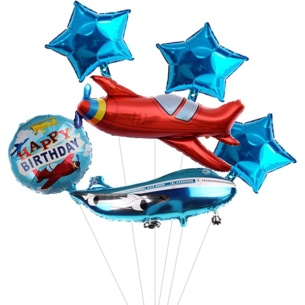 Uçak folyo balon küçük seti:Bu uçak folyo balon küçük seti 6 folyo balon, uçak folyo balonları, yıldız folyo balonları, bulut folyo balonları ve numara folyo balonları vb. içerir. Bu balonlar, delinmelere karşı dayanıklı ve şeklini koruyabilen, partiniz için uzun ömürlü bir dekoratif etki sağlayan yüksek kaliteli alüminyum folyodan yapılmıştır. Eşleşen setimizi seçebilir veya seti ihtiyaçlarınıza göre kendinize göre özelleştirebilirsiniz. Bu paket hava veya helyumla hızlı şişirme için tasarlanmıştır. Kurulum sürecini basit ve basınçsız hale getiren tutkal noktaları ve şeritler içerir. Uçak şeklindeki balonlar neşeli ve canlı bir atmosfer yaratıyor. Çeşitli partiler ve çocukların doğum günü partileri için uygundur.