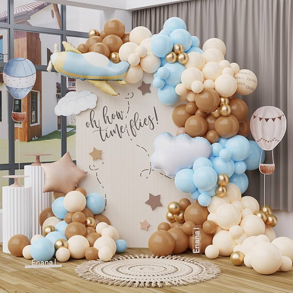 Uçak folyo balonlu balon çelenk:Bu balon çelenkleri uçak folyo balonundan oluşurlateks balonlar, folyo balonlar, balon tutkal noktaları, oltalar ve diğer balon aksesuarları. Bu aksesuarları kullanmak kolayca bir balon kemeri oluşturmanıza yardımcı olabilir. Lateks balonlarımız ve folyo balonlarımız, güvenli ve toksik olmayan ve güzel bir balon çelenk kemeri oluşturabilen doğal kauçuk ve yüksek kaliteli alüminyum folyo malzemelerden yapılmıştır. Bu uçak balonu çelengi, doğum günü partileri, uçak temalı partiler, zaman uçuyor temalı partiler ve bebek vaftiz partileri dahil olmak üzere çeşitli temalı sahneler için uygundur. Herhangi bir kutlamaya renk katmak için mükemmeldir.