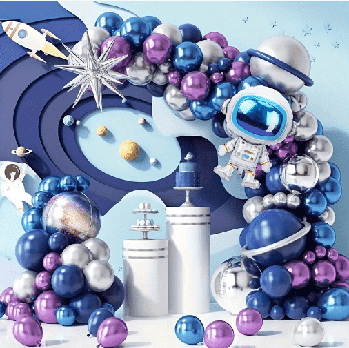 Astronot folyo balon çelenk seti, parti arka planı duvarı, alışveriş merkezi etkinliği giriş düzeni için uygun, büyük ölçekli etkinlikler için göz alıcı bir silahtır. Tabanı balon zinciri olacak şekilde astronot baskı balonu, roket folyo balonu, renkli gezegen balonu ve mat lateks balon serpiştirilip sabitlenir. Çelenk takımı doğrudan duvara veya kapı çerçevesine asılabilir. Derin yıldızlı gökyüzü renk sistemi, sürükleyici uzay atmosferini anında dolduran ve etkinlik alanının görsel odağı haline gelen parlak metalik parlaklıkla eşleşiyor.