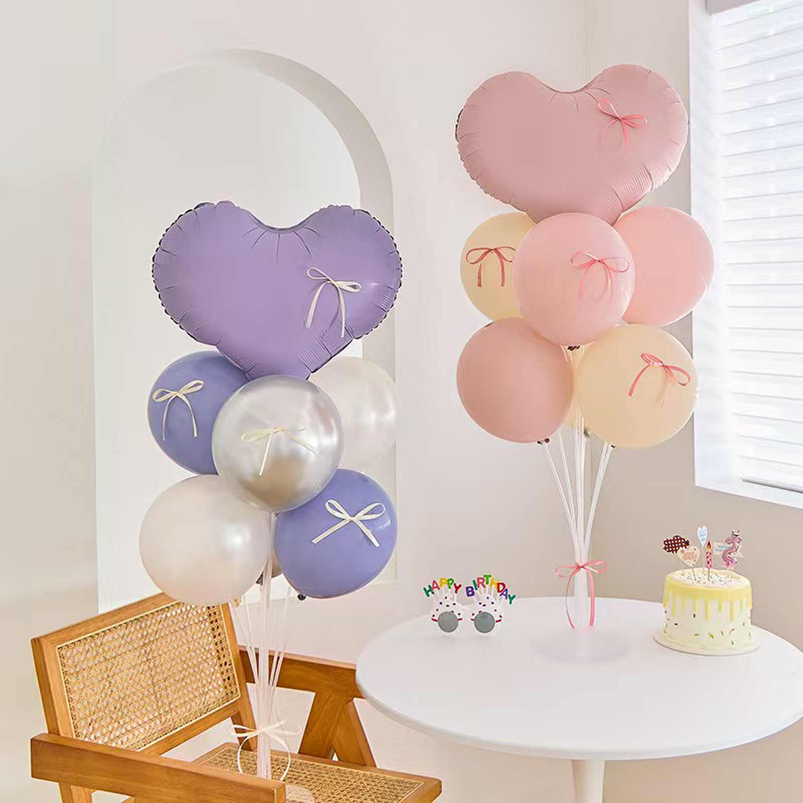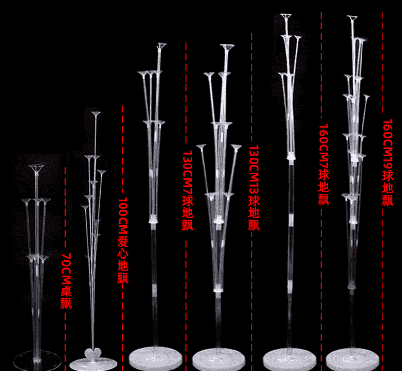 Balon standları ürünü, balon için stabil destek ve modelleme çerçevesi sağlamak, balon ürününü talebe göre belirli bir pozisyonda sabitlemek ve aktivite alanına görsel odak eklemek için balonu kemer, sütun, masa ve yer şamandırası vb. farklı stand türleri aracılığıyla kemer, balon ağacı, aşk vb. gibi çeşitli üç boyutlu şekillerde birleştirmektir. Balonun isteğe bağlı olarak yüzmesini önlemek ve dekorasyon düzeninin temiz ve düzenli olmasını sağlamak için balonu yere, masaya, köşeye ve belirlenen diğer konumlara sabitleyin.