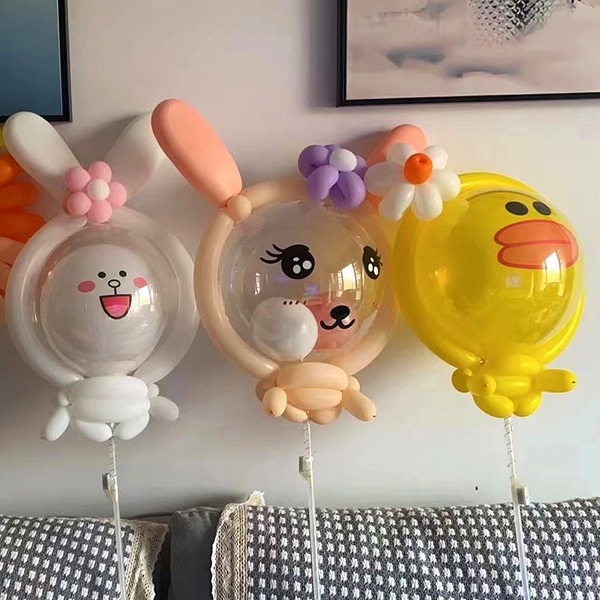 Yeni başlayanlar için montaj süreci de diğer stillere göre daha basittir, bu da daha fazla kar elde etmek için daha az zaman harcayabileceğiniz anlamına gelir.Bobo balon ve oyuncak tavşan24 inçlik bir Bobo balondan yapılmıştır, ayrıca içinde sadece bir oyuncak tavşanı değil aynı zamanda parlak konfeti de görebilirsiniz. Doldurduktan sonra balonu istediğiniz efekte göre hava veya helyumla şişirebilirsiniz. Helyumla doldurulursa, balonun içindeki konfeti oyuncak tavşanın etrafında yüzerek çok çekici bir etki yaratabilir. Bobo balonunun üzerine kutsama sözleri veya ifade çıkartmaları vb. bazı çıkartmalar koyarak onu daha şık hale getirebilirsiniz. Tamamladıktan sonra Tüm adımlarda Bobo balonunu sağlam bir yere sabitlemek için farklı renkli ipek kurdeleler kullanabilirsiniz.