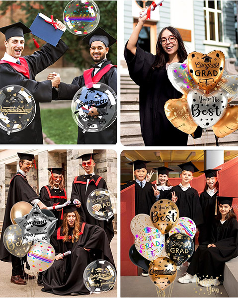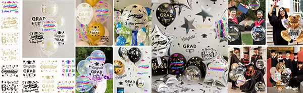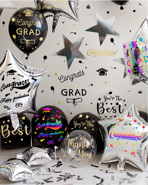 "Mutlu Mezuniyet" balon çıkartmalarımız mezuniyet partilerinin neşeli atmosferini arttırmak için tasarlanmıştır. Her çıkartmada başarı ruhunu yansıtan bir kutlama cümlesi veya tasarımı bulunur. Benzersiz dekorasyonlar oluşturmak ve aileniz ve arkadaşlarınızla unutulmaz fotoğraflar ve önemli anları yakalamak için bu çıkartmaları kullanın.