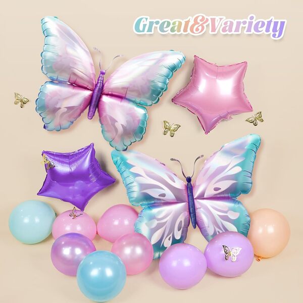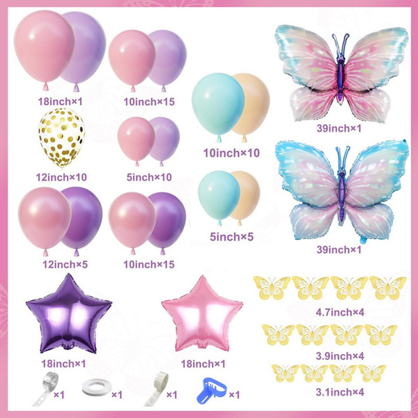 Kelebek stili uzun yıllardır çok popüler. Romantizmi ve özgürlüğü temsil eder. Hem yetişkinler hem de çocuklar kelebek tarzından etkilenecek. Birçoğu bu kelebek balon çelenk setini doğum günü partileri için kullanmayı umuyor. Ayrıca bunu düğünlerde, tatillerde, bebek partilerinde ve herhangi bir yıl dönümünde kullanabilirsiniz.