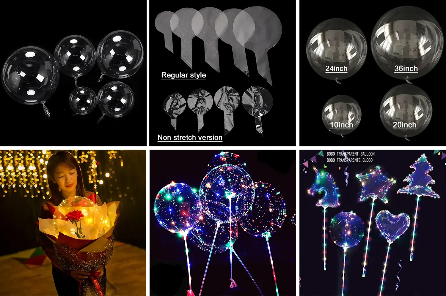 Özellikler: Şok edici görsel efektler, 32 inç berrak bobo balonları çekirdek süslemeler yaratır. Enflasyondan sonra çap 58 cm veya daha fazla ulaşabilir.