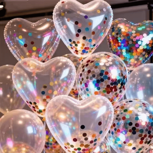 konfeti ayrıca yuvarlak, uzun, kar tanesi ve yıldız yıldız şekilleri gibi çeşitli şekilleri de içerir. Konfetilerimiz statik elektrikle işlenecek, bu nedenle balonda birbirine yapışmaları kolay olmayacak ve çalkalandığında eşit şekilde yayılarak parlak bir görsel efekt yaratabilecekler.