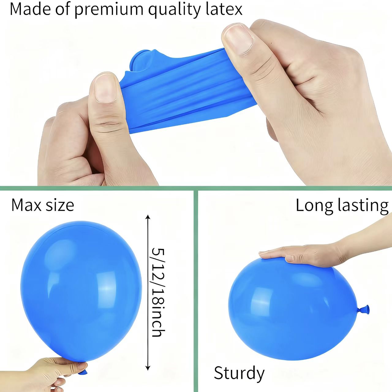 Toksik olmayan ve güvenlidirler, hem helyum hem de hava dolumu için idealdirler, bu da onları tüm etkinlikler için harika kılar. Balon şişirildikten sonra şeklini ve kaldırma kuvvetini uzun süre korur, dekorasyonlarınızın kutlama boyunca canlı kalmasını sağlar.