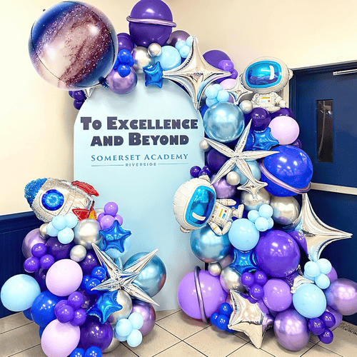 Özelleştirilmiş galaksi temalı balon çelengi NiuN®'de çok kolaydır. Balon veya paket için fark etmez, balonların boyutları ve renkleri değiştirilebilir. Balonlara ek olarak balon kitinin paket çantası da özelleştirilebilir.
