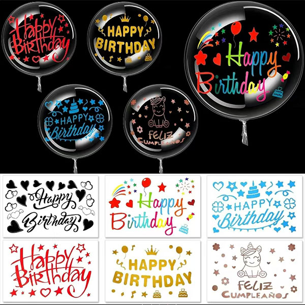 Çıkartma Mutlu Yıllar Bobo Balloon esnek bir tasarıma ve ana nokta olarak birçok stile sahiptir. Açık balon yüzeyine farklı “mutlu yıllar” çıkartmaları stilleri koyarak, insanlar kişisel dekorasyon yapabilir. Çıkartmaların birçok seçeneği var. Bunlar altın, gümüş, siyah, kırmızı ve renk türleridir. Genellikle taçlar, şarap bardakları, kalpler ve hediyeler vardır. Görünüm daha eğlenceli ve daha modern. Çıkartma türü, insanların elle yapmasını sağlar. Farklı parti temaları veya renk setleri için hızlı değişebilir. Yararlı ve yaratıcıdır. Birçok tat ve dekorasyon ihtiyacını karşılıyor.