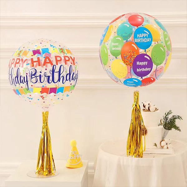 Konfeti şeffaf mutlu yıllar bobo balonunun içine koymak, balonun daha fazla hareket dolu ve katmanlar açısından daha zengin görünmesini sağlar. Balon hareket ettiğinde konfeti hareket eder. Parlak bir görsel etki gösterir. Parti atmosferi parlak ve mutlu yapmak güzel. Balon tek renkli metal konfeti veya karışık birçok renk kullanabilir. Her ikisi de balonun daha modern ve daha iyi görünmesini sağlar. Bir arka plan duvarı veya bir kemer için kilit nokta olabilir.