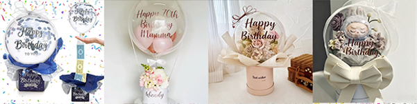 Bobo balonunun içine bir veya daha fazla gül konulabilir. Romantik bir duygu göstermenin klasik bir yoludur. Açık balon bir kapak gibidir. Çiçeklerin daha parlak ve daha güzel görünmesini sağlar. Kırmızı güller tutku demektir. Pembe güller yumuşak ve nazik anlamına gelir. LED ışıkları ile görünüm daha iyidir. Doğum gününde bir kız için iyi bir hediye.