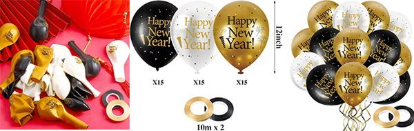 Yeni Yıl temalı lateks toplar, "Yeni Yılınız Kutlu Olsun" gibi Yeni Yıl tasarımlarını veya siyah, altın ve gümüş gibi şenlikli renkleri içeren, setler halinde sunulan dekoratif balonlardır. Partiler için mükemmeldirler ve balon kemerleri, buketler oluşturmak veya tavana asmak için kullanılabilirler. Borun Balon Fabrikası'nın sunduğu yılbaşı temalı lateks topların tamamı tamamen lateksten üretilmekte ve Happy New Party Latex Balonları CE sertifikasını karşılamaktadır. Niun markası, Yeni Yıl temalı lateks balonların toptan satışını desteklemektedir. Bu Mutlu Yıllar lateks topları hem pratik hem de estetik açıdan hoş olup, hem uygun maliyetli hem de yaratıcı tasarım sunar. Festival atmosferini anında yükseltir ve her kutlamaya sıcaklık ve neşe katarlar.