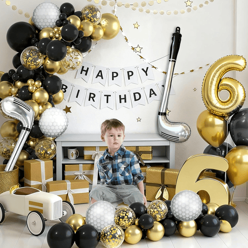 Balonların yanı sıra, golf temalı arka plan veya diğer temalı dekorasyonlar gibi stil eklemek için bazı aksesuarlar da ekleyebilirsiniz. Başka efektler oluşturmak için kit içindeki balonları da kullanabilirsiniz. Bir folyo balon setindeki delik veya bir lateks balon setindeki delik gibi. Hepsi partilerinizde mükemmel etki yaratabilir.