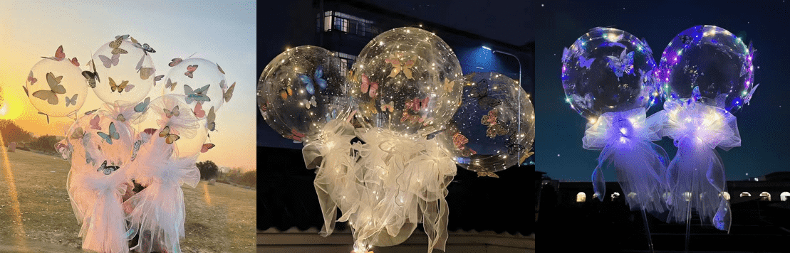 Balon kitleri (çeşitli boyutlarda sıradan balonlar, balon zincirleri ve şişiriciler dahil) festival ve kutlama gibi dekorasyon için önemli ürünlerdir ancak tek bir kit kalın ve ağırdır. İçi boş kelebek çıkartmaları, toplu süsleme ve yerel odaklama yoluyla düzen düzeylerini zenginleştirerek büyük ölçekli düzeni daha esnek hale getirebilir.