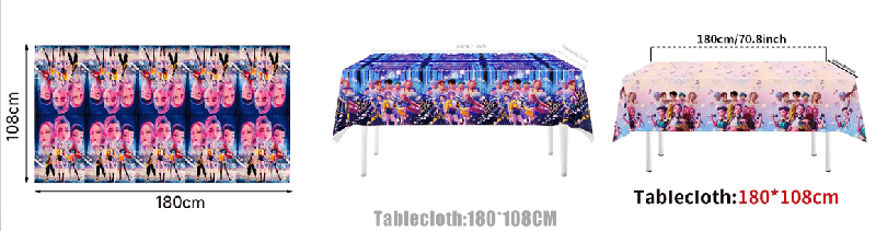 Masa örtüsü gıdaya uygun malzemelerden yapılmıştır. Ürünler su geçirmez, yağa dayanıklı ve kokusuzdur. Yemek masasına yerleştirildiğinde masayı koruyabilir ve sofra takımları ve afişler gibi dekorasyonları tamamlayarak tüm sahneyi daha uyumlu hale getirebilir. Parti dekorasyonu için daha fazla olanak sağlamak amacıyla özelleştirilmiş K-POP Demon Hunters Balon Partisi dekorasyon masa örtüsü ürün desenleri ve boyutları sunuyoruz.