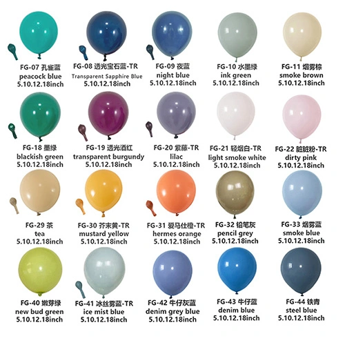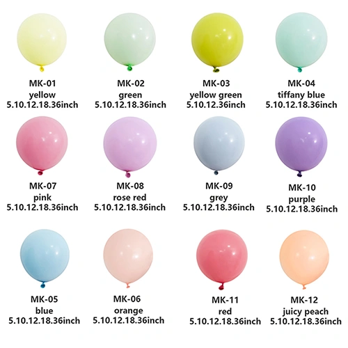 Lateks balonlar yaygın olarak kullanılan dekoratif ve eğlence öğeleridir. Bu balonlar farklı renkleri ve kullanım şekilleri nedeniyle çeşitli vesilelerle oldukça popülerdir. Mat kırmızı, sarı, mavi ve yeşilden retro pembe ve mora, ardından altın ve gül gibi metalik tonlara kadar yüksek kaliteli balonlar şaşırtıcı görsel efektler yaratabilir ve çeşitli senaryoların ihtiyaçlarını karşılayabilir.