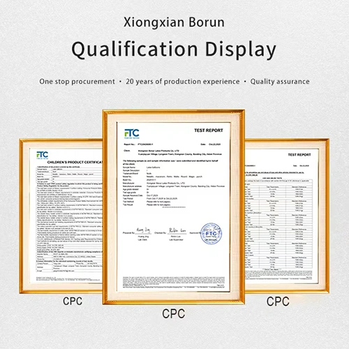 ASTM F963 (ABD Oyuncak Güvenliği Standardı):Ürünün ABD pazarının toksik olmama gerekliliklerini karşılamasını ve çocuklar ve iç mekan kullanımına uygun olmasını sağlar. Bu sertifika Amazon ve ABD pazarı için zorunludur. Balonları bizden toptan satın almanız durumunda size sertifikayı kullanma yetkisi vereceğiz.