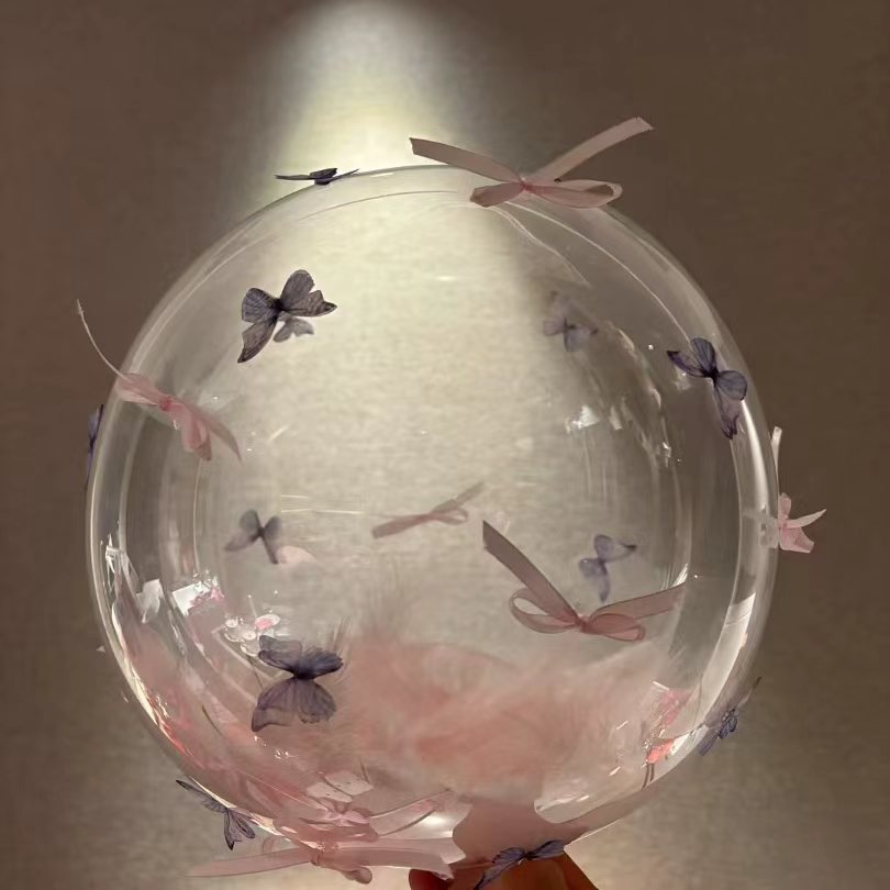 Çin liderliğindeki tüy dolu bobo balonugeleneksel balon tasarımlarından uzaklaşır,şeffaf bobo balonu“Konteyner” olarak. Gizli bir LED ışık şeridi (sabit, yanıp sönen ve diğer modlarda mevcuttur) ile eşleştirilmiş renkli tüyler veya tek renkli tüyler içerir. Balon şişirilir. Yuvarlak ve dolu olur. Tüylerin canlı görünümünü açıkça gösterir. Gündüz. Tüylerin doğal renkleri ışık ve gölge ile karışır. Sahneye yumuşak ve zarif bir his katarlar. Gece. LED ışık şeritleri açılır. Tüyler bir parıltı ile kaplıdır. Büyülü bir ruh hali yaratırlar. Müşteriler tüy renklerini özgürce seçebilir. Sahnenin ihtiyaç duyduğu şeye göre seçerler. Örneğin, romantik düğün temaları pembe ve beyaz tüyleri kullanabilir. Çocuk partileri karışık gökkuşağı renkli tüyler kullanabilir. Bu, hayal gücünün ve eğlencenin kıvılcımlarına yardımcı olur.