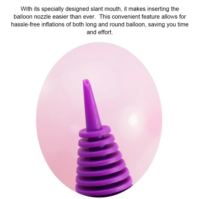 Balon modelleme el pompamız için Borun Balon Fabrikası, daha kolay sokulma için eğimli bir nozul tasarımı kullanır. Çoğu lateks ve folyo balon ile uyumludur. Balon pompası hem üst hem de alttan hava çeker, balonu iki kat daha hızlı şişirir, zaman ve çaba tasarrufu sağlar. Bu BorunNiun marka balon el pompasıBalonları ağızdan şişirmek için nefes tasarrufu sağlayan bir alternatiftir.