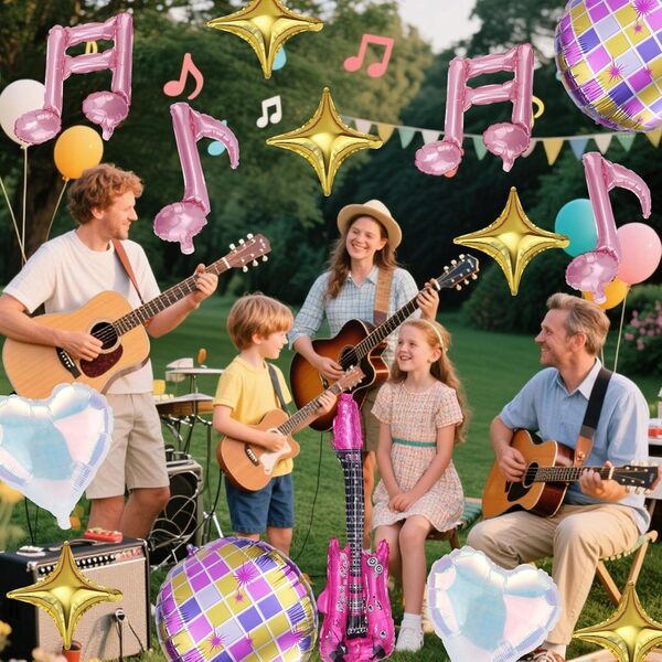 Başka hiçbir sanatın müzik kadar etkisi ve gücü yoktur. Nesiller ve kültürler tutkuyu takdir etti ve takdir etmeye devam ediyor. Gitar, bas, piyano ve daha fazlası gibi çeşitli müzik enstrümanları, müzik olarak adlandırdığımız şeyi dönüştürdü. Diğerleri ise duyguları ve ritimleri tasvir eden titremeler ve minimler gibi müzik notalarını düşünüyor. Konser temalı kutlamalar için,müzik folyo balonlarfantastik bir dekoratif unsur ekleyin. Sürüklenmeyi teşvik ederler ve her yeri müzik ve performans sanatıyla dolu bir sahneye dönüştürebilirler. Bir hikaye anlatırlar. Aksi takdirde olaysız geçecek bir etkinliğe karakter ve değer katarlar.