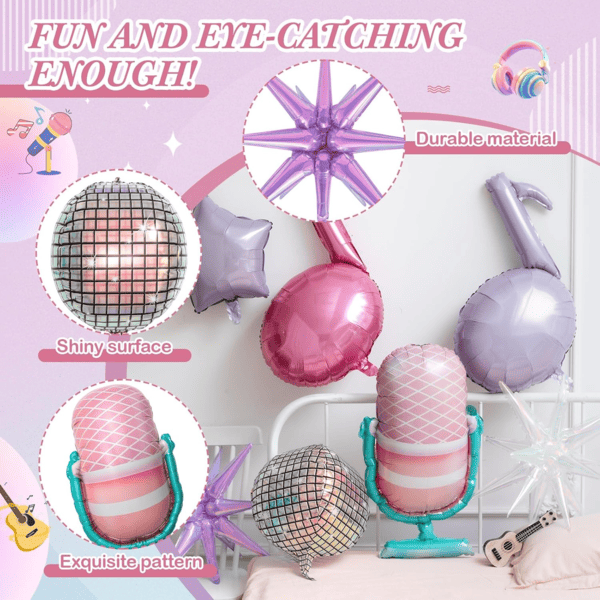Müzikli folyo balonlarMüzik aletleri folyo balonları (gitar folyo balonları, mikrofon folyo balonları) ve nota folyo balonları gibi farklı türleri mevcuttur. Pop müziğin popülerliği arttıkça artık büyük bir pazara sahipler. Örneğin, Kpop Demon Hunters filmi artık Amerika Birleşik Devletleri'nde bir virüs. Pek çok Amerikalı genç, bu filme saygı duruşunda bulunmak için doğum günü partilerine ilgili müzik unsurlarını dahil etmeyi umuyor. Müşterilerin tüm ihtiyaçlarını karşılamak amacıyla onlar için farklı renkler hazırladık: erkek çocuklar için lacivert, mavi, siyah ve kahverengi kullanabilirsiniz; kızlar için pembe, açık pembe, mor vb. kullanabilirsiniz. Her zaman uygun bir renk sizi bekliyor. Büyük bir esnekliğe sahiptirler ve bunları istediğiniz şekilde birleştirebilirsiniz. Örneğin, müzik folyo balonları çelenk seti yapmak için birkaç lateks balon eklemek gibi. Veya müzik folyo balonlarını küçük bir set yapmak için birkaç balon kullanın.