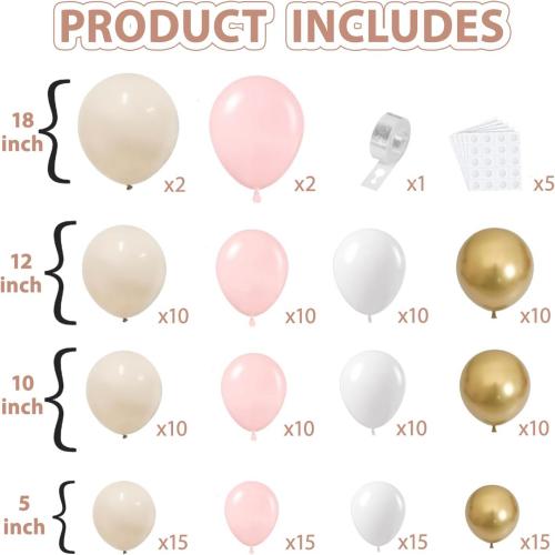 NiuN markasının Pembe Bej beyaz balon kemer kitinde emsallerine göre çok daha kaliteli lateks balonlar kullanılıyor.