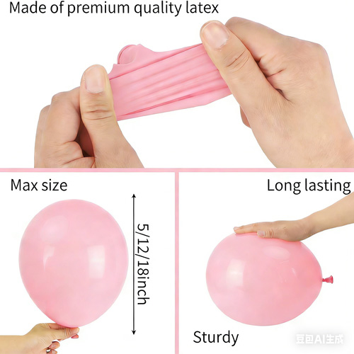Balon hammaddeleri: Güneydoğu Asya'dan ithal edilen saf doğal lateksten yapılmıştır. Balonlar daha esnektir, daha büyük boyutlara şişirilebilir, patlama olasılığı daha düşüktür ve çevreyi kirletmeden tamamen doğal olarak parçalanabilir.