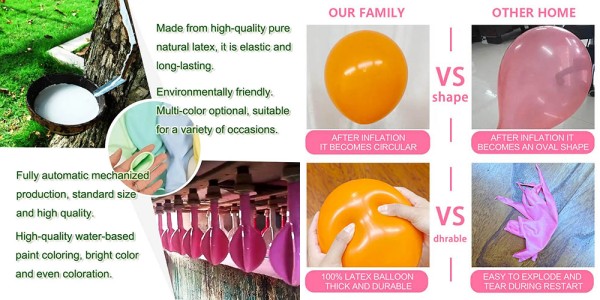 Daha güçlü doku: Yüksek kaliteli hammadde ve ileri teknoloji kullanımından dolayı lateks balonlarımızın her biri çok güçlü bir dokuya ve zengin renklere sahiptir.