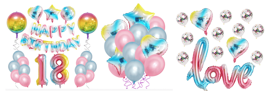 Renk yönü: Zengin çeşitlilikte renk efektleri gösteren, degrade çiçeklenme, renkli dikiş, gökkuşağı çizgileri ve diğer işlemleri kullanan gökkuşağı numarası folyo balon. Bazı ürünler kırmızı, turuncu, sarı, yeşil, mavi, çivit mavisi ve mordan oluşan yedi temel renge dayanmaktadır. Doğal geçişin kademeli değişim teknolojisi sayesinde yağmur sonrası gökkuşağı gibi şeffaf bir doku oluştururlar. Bazı ürünler, güçlü bir görsel etki oluşturan ve parti atmosferini aydınlatan pembe ve mavi ekleme, sarı ve yeşil yankı gibi yüksek doygunluğa sahip renk çarpışmasını kullanır. Bu renk tasarımları, halkın gökkuşağının simgelediği güzellik ve şans arasındaki psikolojik çağrışımına uygundur ve farklı temalara sahip parti tarzlarına da uyarlanabilir.
