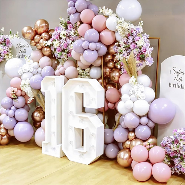 16. yaş gününe tatlı on altı denir ve çocukluktan ergenliğe daha ileri geçişi simgeleyen anıtsal bir büyüme noktasıdır. Ailelerin bu özel günü kutlamak için partiler düzenlemesine daha iyi yardımcı olmak amacıyla fabrikamız, tüketicilerin satın alma ihtiyaçlarını karşılamak üzere özel olarak 16'lı tatlı bir balon kemerini piyasaya sürdü. Bu çelenk kemeri seti lateks balonlar, folyo balonlar, doğum günü afişleri, balon kutuları, yapıştırma noktaları ve diğer aksesuarlardan oluşur. Lateks balonlarımız doğal kauçuktan, folyo balonlarımız yüksek kaliteli alüminyum folyo malzemeden üretilmiştir ve her 16. doğum günü dekorasyonu seti, en yüksek kalite standartlarını sağlamak için dikkatle denetlenir. Balon dayanıklı, patlamaya dayanıklı, kusursuz olup hem hava hem de helyum dolumuna uygundur. Bu balon kemerin yanı sıra 16 led ışıklı balon çelenk kemeri de ürettik. 16 ledli ışık, doğum gününüzü daha dikkat çekici hale getirir ve aralarından seçim yapabileceğiniz üç mod vardır. Ayrıca 16 yaş doğum günü baskılı lateks balon setimiz de mevcuttur. Bu set genellikle 12 inçlik lateks balonlarda kullanılır. Desen açıktır ve zarar görmesi kolay değildir. Uzun süre kullanılabilir. Farklı ve büyük organizasyonlardaki ihtiyaçlarınızı aynı anda karşılamak için bu paketleri oluşturduk, partinize keyifli bir hava kattık.