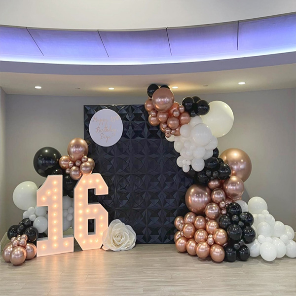 16 led ışıklı balon çelenk:Fabrikamız ayrıca 16 yıllık led ışıklı balon çelenginin lansmanını yaptı. Led sayı ışıkları, parlak ve kalıcı aydınlatma efektleri sağlamak için çevre dostu ABS ve LED malzemelerden yapılmıştır. Karanlıkta parlayabilen sayı ve harflere sahip LED ışıklar. Yumuşak aydınlatma rahat ve konforlu bir atmosfer yaratır ve her odaya benzersiz bir çekicilik katar. Bağımsız olarak sergilenebilir veya duvara, şömine rafına asılabilir veya etkinlikler veya kutlamalar sırasında kullanılmak üzere resepsiyon alanına yerleştirilebilirler. Sürükleyici bir parti atmosferi yaratmaya uygun balon çelenk kemerli LED numara ışıkları, benzersiz ve unutulmaz fotoğraflar çekmek için vazgeçilmez bir destektir ve 16. yaş gününüze unutulmaz bir tören duygusu katar.