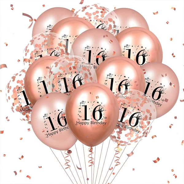 16. doğum günü baskılı lateks balon:Fabrikamız tarafından üretilen bu 16. yaş günü baskılı lateks balon, 16. yaş günü partileri ve 16. yıl kutlama etkinlikleri için oldukça uygundur. Aralarından seçim yapabileceğiniz çeşitli renklerimiz var. Rose altın, siyah altın, mor altın, mavi ve siyahı gösteriyoruz. Ayrıca ihtiyaçlarınıza göre 16 adet baskılı balonu da özelleştirebiliriz. Fotoğraf çekmek için mükemmel arka plan dekorlarıdır ve bu sahnelere neşe ve aktif bir atmosfer katabilirler. Bu baskılı balon hava, helyum ve hatta suyla doldurulabilir ve kolayca zarar görmez veya rengi solmaz. Her türlü 16. doğum günü partisi veya aile toplantıları için harika bir dekorasyon. Daha da fazla eğlence için bu lateks balonu diğer parti dekorasyonları ve süslemeleriyle birlikte kullanın.