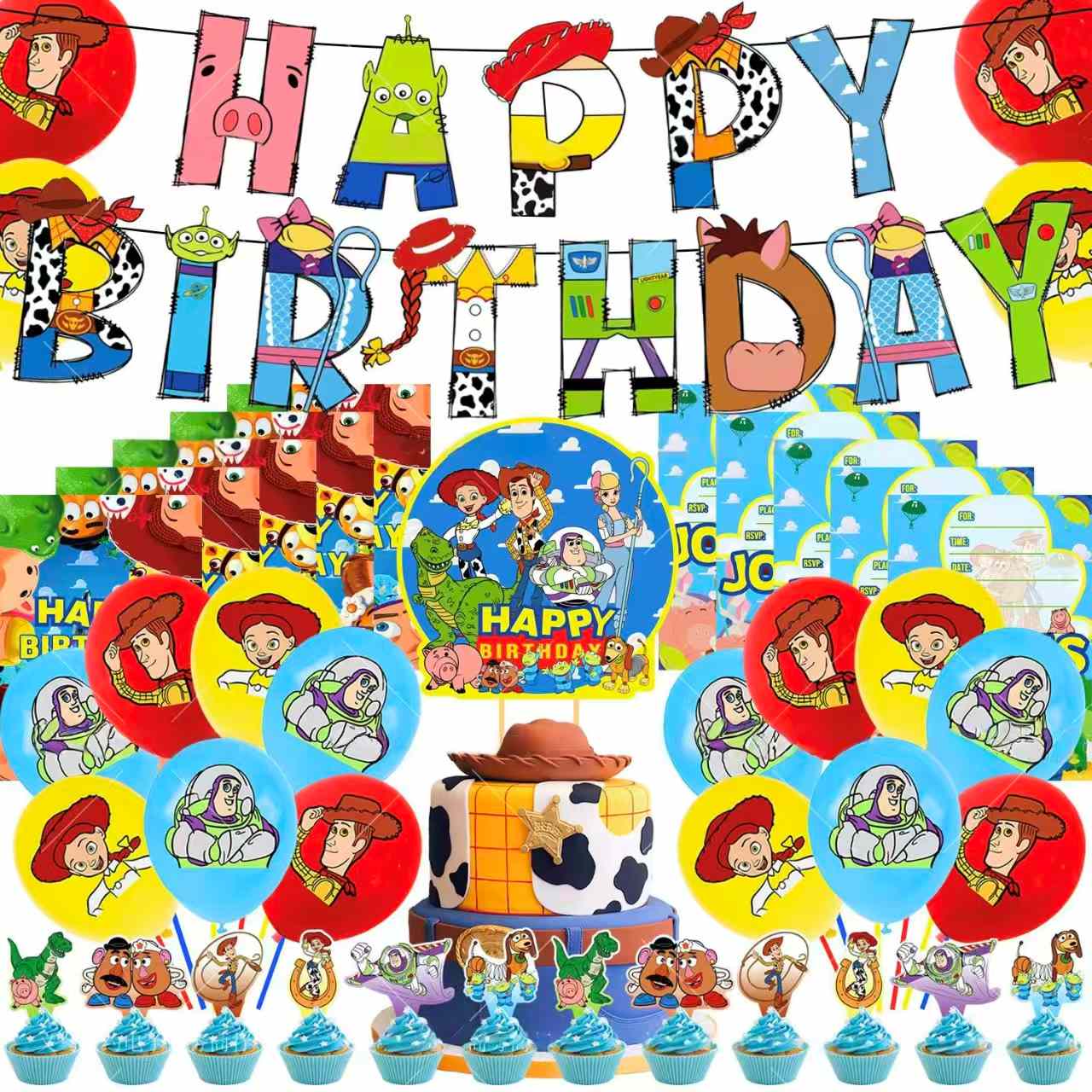 Oyuncak hikaye sofra takımları film karakterlerinin baskılarını gösterir. Stil birleşik ve eğlenceli. Sette kağıt bardaklar, tabaklar, bıçaklar, çatallar ve kek toppers vardır. Her parça film dünyasının bir parçası gibi hissediyor. Yemekler de tema içinde hissediyor. Öğelerin kullanımı kolay ve partiler için pratiktir. Ayrıntılı küçük sürprizler ekliyorlar. Çocuklar ve konuklar yemeklerin tadını çıkarırken Toy Story’nin şirketini hissedebilirler.