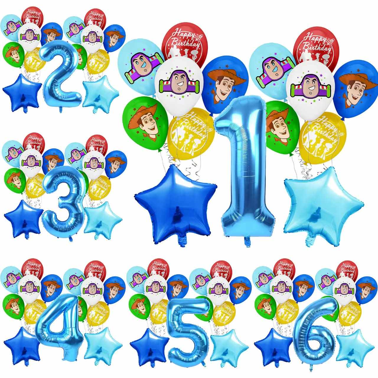 Oyuncak hikayesi lateks balonlar mavi, sarı, yeşil ve kırmızı ana renkler olarak kullanır. Beyaz bulutlar ve karakter baskıları gösterirler. Görünüm film stiliyle eşleşir ve bilmesi kolaydır. Parti dekoru için iyi bir seçimdir. Doğal lateksden yapılmış, malzeme güvenli ve çevre dostudur. Balonlar iyi gerilir, doldurduktan sonra yuvarlak ve dolu kalır ve kolayca patlamaz. Çocuk partilerine uyuyorlar.