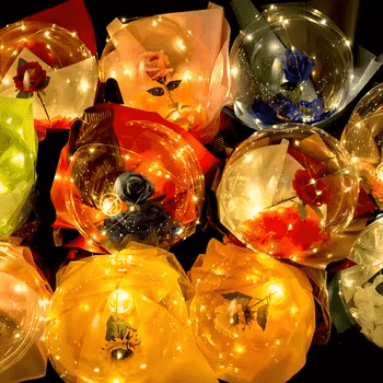 Rose bobo balon, gülü bobo balonla birleştiren yaratıcı bir üründür. Güller kabarık ve dolgun olarak yoğrulur, şeffaf bir bobo balonun içine konulur ve ardından bobo balonu şişirilir. Daha sonra çiçek direği ve top ağzı yapışkan bantla sabitlenecek ve ışık hattına sahip top tutucu takılacaktır. Işık hattı ayrıca çeşitli ışık modlarına sahiptir. Ayrıca topun daha güzel ve narin görünmesi için uzun balonlar, peri iplikleri, kurdeleler vb. ile süslenecektir. Esas olarak Sevgililer Günü, doğum günü, evlilik ve diğer romantik günler için kullanılan dekorasyon, hediye olarak da verilebilir.