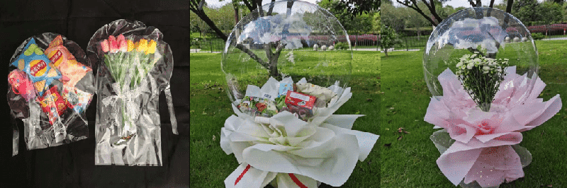 Snack bobo balon, şeffaf TPU çift ağızlı bobo balonu çeşitli atıştırmalıklarla birleştirerek hem güzel hem de pratiktir. Şeffaf küre, içindeki atıştırmalıkları açıkça görebilir. Genel şekil güzel ve renk bakımından zengindir. Çift portlu tasarım, atıştırmalıkları şişirmeyi ve paketlemeyi daha rahat ve hızlı hale getirir. Çift portlu conta, balonun hava sızdırmazlığını daha iyi sağlayabilir, balonu dolu ve uzun süre tutabilir ve buketin görüntülenme süresini artırabilir.