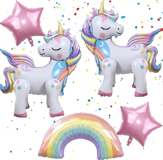 Tek boynuzlu at temalı balonlarfantastik masalların temel tonalitesine dayanmaktadır. İki temel kategoriye ayrılırlar: baskılı lateks tek boynuzlu balonlar ve tek boynuzlu folyo balonlar. Ayrıca üç boyutlu modelleme, fener modelleri ve diğer türevleri de içerirler. Parti dekorasyonu için popüler öğelerdir.