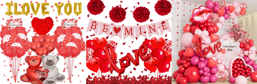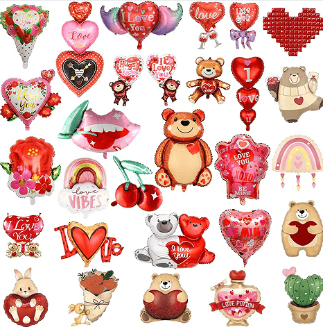 Sevgililer Günü balonları romantizm, aşk ve ritüel etrafında tasarlanmıştır. Temel kategoriler Sevgililer Günü kalp şeklinde folyo balonlar, Sevgililer Günü tarzı folyo balonlar, Sevgililer Günü mektubu folyo balonları ve özelleştirilmiş olarak ayrılabilir.Sevgililer Günü balon çelenk setlerive benzeri.
